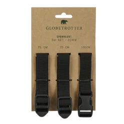 Zum Set gehören zwei 75 cm lange Spannriemen mit Leiterschnalle und ein 100 cm langer Gurt mit Blitzverschluss. Sie eignet sich zum Sichern leichter Ausrüstungsgegenstände. Die Gurte sind 20 mm breit.
