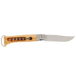 Hochwertiges Pilzmesser von Opinel mit hakenförmiger Klinge aus Edelstahl, am Griffende sitzt eine Bürste aus Wildscheinborsten zum Reinigen der Pilze.